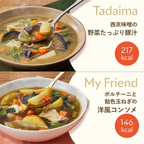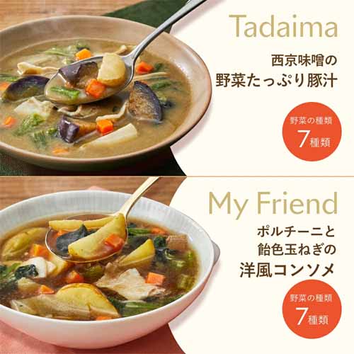 GREEN SPOONは1食あたり7種類のお野菜が300gとたっぷり入っていて食べ応えがあることと、カロリーが控えめなのでとってもヘルシー。ミネストローネ、ビスクポタージュ、豚汁、洋風コンソメといった、人気のおいしいデトックススープを手軽に摂ることができます。