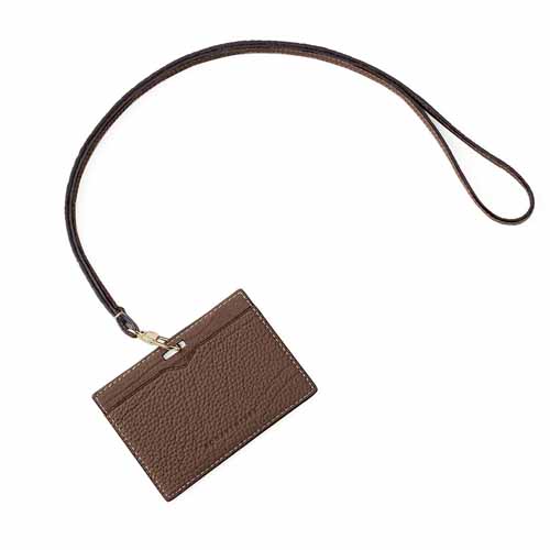 上質なシュリンクレザーを使っており、傷が目立ちにくく長くきれいに使いやすいのが特徴です。首掛けしやすい設計で、IDカードの出し入れもスムーズ。シンプルで洗練されたデザインなので、職場でも浮きにくく、毎日の仕事を上品に支えてくれます。