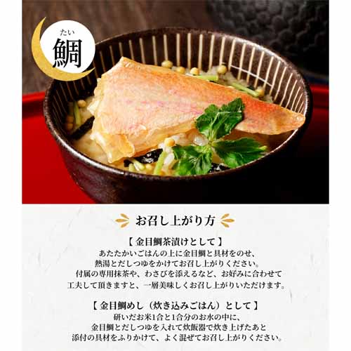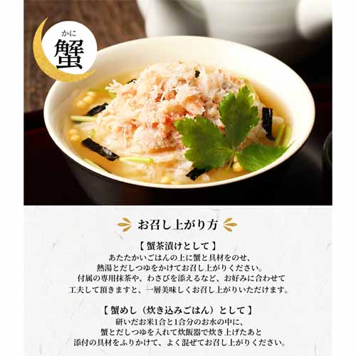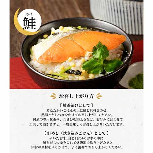 鯛や蟹などの具材に加え、特製だしや高級茶葉を使った本格的な味わいが魅力です。お湯を注ぐだけで楽しめる手軽さがあり、忙しい人にも使いやすいのがポイント。化粧箱入りで見た目にもきちんと感があり、贈答向きの完成度です。