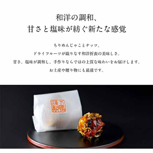ちりめんじゃこ、ナッツ、ドライフルーツを組み合わせた和洋折衷の味わいで、甘さ・塩味・旨みのバランスが絶妙です。個包装で配りやすく、常温保存しやすいのも便利。老舗料亭の上質感があり、手土産としても見栄えのする一品です。
