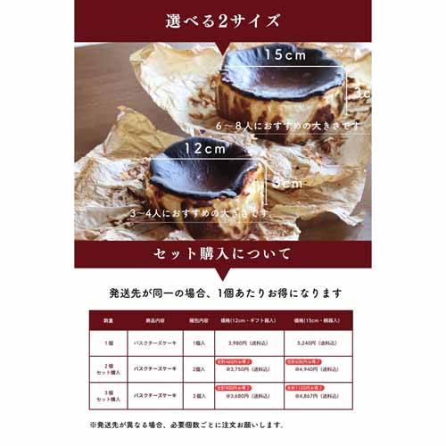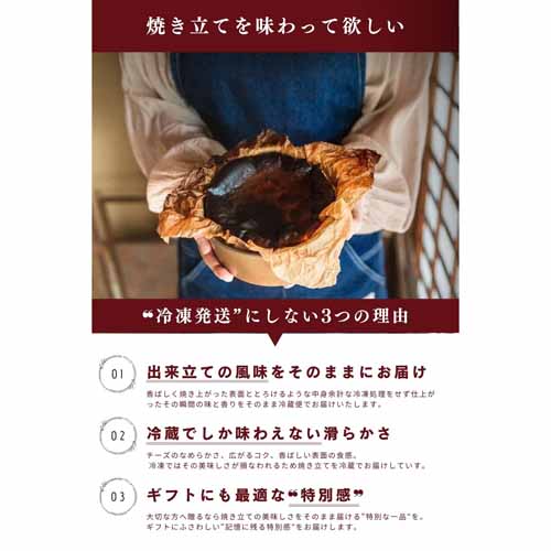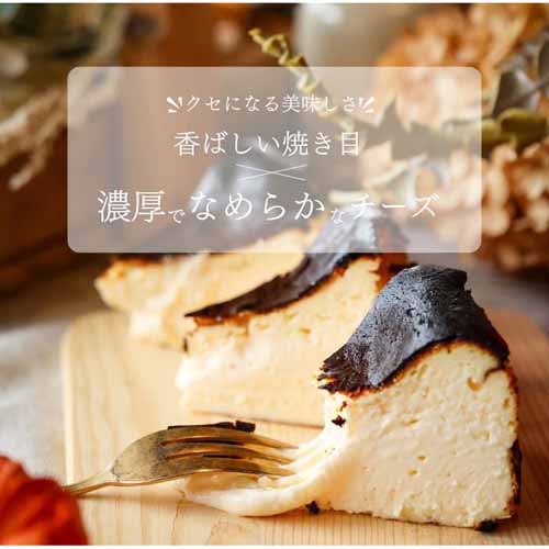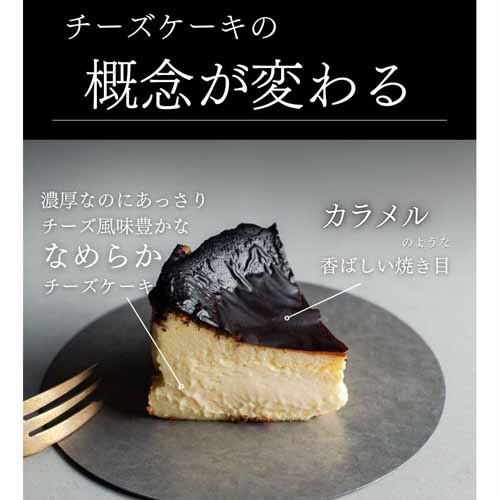 焦げ目の香ばしさと、とろりとなめらかなチーズ層が特徴の本格派バスクチーズケーキ。12cmと15cmの2サイズ展開で人数に合わせて選びやすいことも魅力。厳選した北海道産クリームチーズを使用し、濃厚なのに後味はすっきり。メディアでも取り上げられた人気スイーツです。