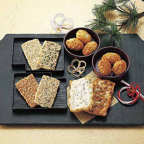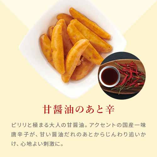 自社で前日精米した米を使用し、風味が逃げないよう職人が一枚一枚焼き上げたおかきは香ばしく、米の旨みがしっかり際立つ味わい。あられ・おかき専門店ならではの食感の良さも魅力です。塩・醤油・海苔など王道の味が揃い、飲み物を選ばず楽しめます。