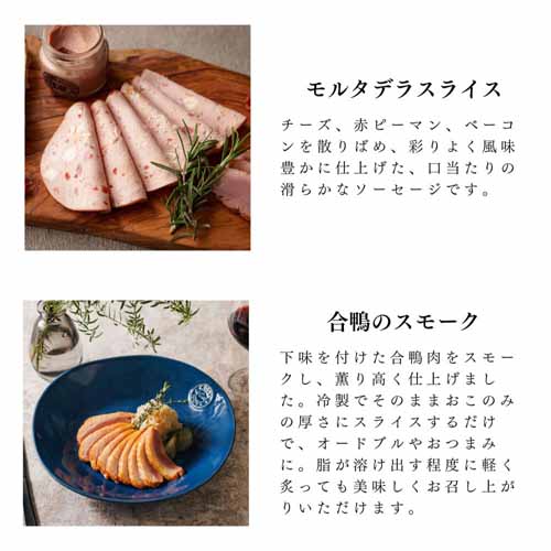 ワイン中心の宅飲みに持っていくなら、食卓が一気に華やぐ本格シャルキュトリーが最適。雑誌でも多数紹介される実力派ブランドで、肉系が好きな男性陣にも刺さります。職人の手による味わいは、いつもの宅飲みをちょっと贅沢な時間へと格上げしてくれます。