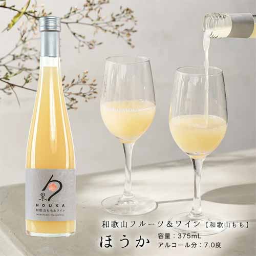 和歌山の桃の果汁を白ワインにブレンドした、華やかな香りが特徴のリキュール。アルコール7%で飲みやすく、ほんのり甘い仕上がりです。375mlでみんなでちょっとずつ試し飲みするのに最適なサイズ感。フルーティーな味わいは食後酒にも合い、宅飲みの締めの一杯としても重宝します。