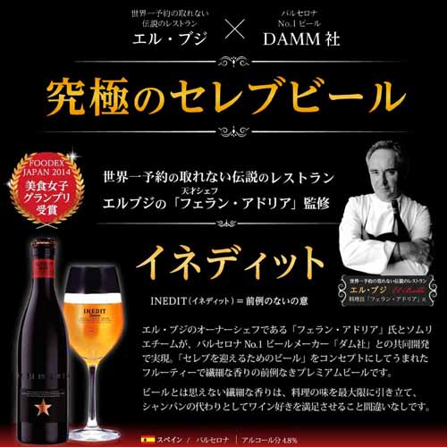 世界的名店「エル・ブジ」とスペインNo.1ビールメーカーが共同開発した、まさに“特別感の塊”のプレミアムビール。750mlの大容量は乾杯の瞬間が盛り上がり、宅飲みのスタートを華やかに演出します。シャンパンのような香りでワイン派もとりこに。持参すれば大注目の一本になるでしょう。