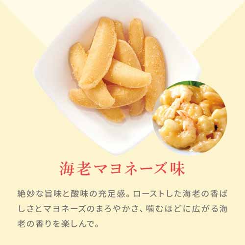 少しずつ食べることができる個包装と粒感が魅力。軽い食感でつまみやすく、宅飲みが長時間でも手が止まらないおいしさです。