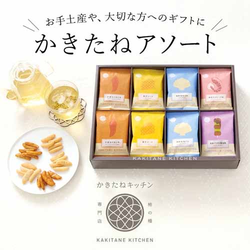 柿の種専門店ならではの多彩なフレーバーが楽しく、男女問わず「選ぶ時間」から場が盛り上がるアソート。甘醤油、海鮮塩だれ、海老マヨ、チーズなど和洋どちらも揃っていて味変しながら楽しめます。