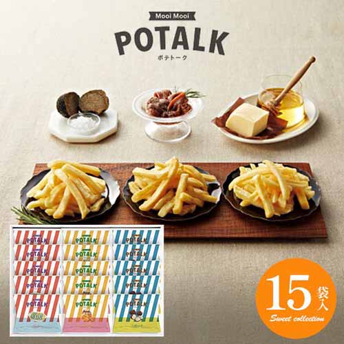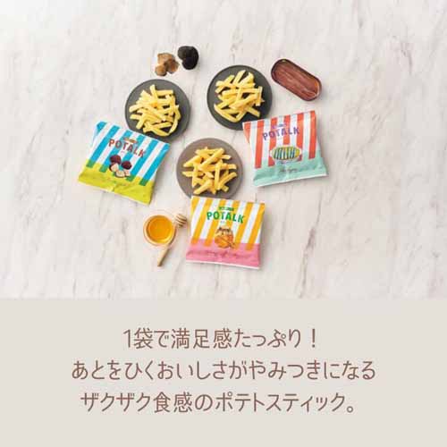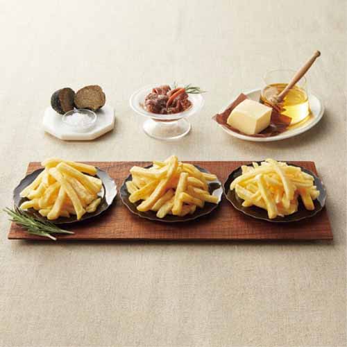 1袋でも満足感のある太めのポテトスティックは、ザクッと軽快でクセになる食感。トリュフ香る塩、うまみたっぷりのアンチョビ、やさしい甘さのハニーバターと、個性豊かな3種の味が揃います。スタイリッシュなパッケージで、見映えもよく手土産に最適です。