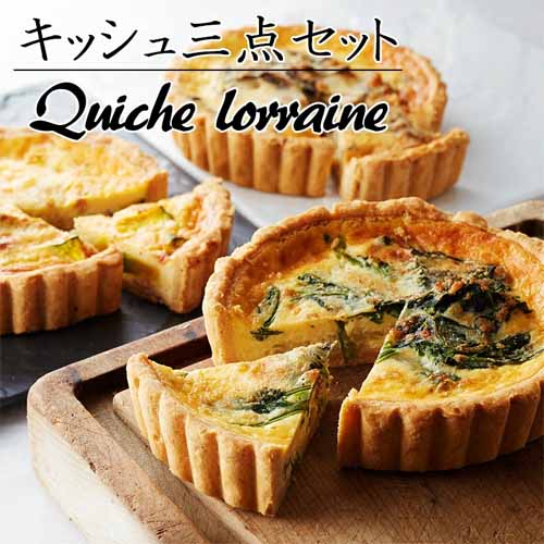 本場ロレーヌで修行したシェフが作る本格キッシュ。かぼちゃ・ほうれん草・きのこの3種を食べ比べでき、使用するグリュイエルチーズも原木で仕入れるこだわり。電子レンジで温めるだけで本格的な味が楽しめ、ホストの手間を増やさないのも魅力です。