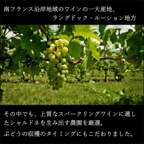 南フランスのシャルドネを厳選し、1年間オーク樽で熟成させた深みのある味わいです。ベリーやシトラス、青リンゴが香るエレガントなロゼで、果汁や香料不使用の本格派。きめ細かな泡とシルキーな口当たりが特徴で、チキンやパスタ、チーズとも相性バツグンです。