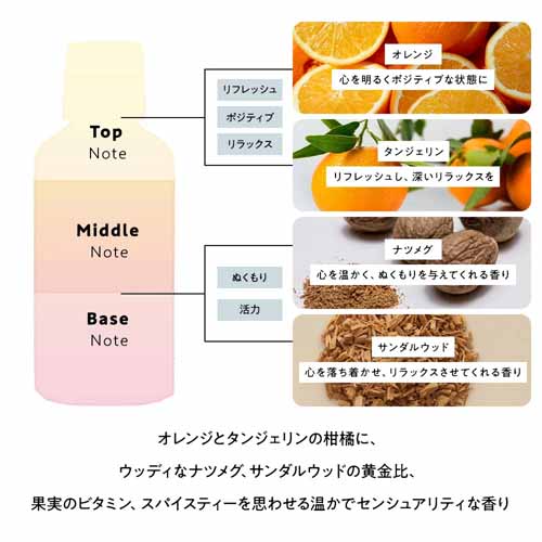 良質な天然香料と流行のキーノートを調香した香りは斬新さと心地よさを感じます。男性ならレモンの香りがスッキリと爽快な気持ちにさせる「グリーンシトラス」、女性なら優雅なルミナスホワイトフローラルの香りの「ネロリ」など、9種の香りから選べる幅広さも心強い。