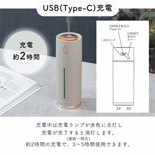 超音波式加湿器なら静音性にすぐれているので、職場で使用しても気になりません。充電式なので電池やコードの心配がいらず、場所を選ばずに置けるところも便利です。