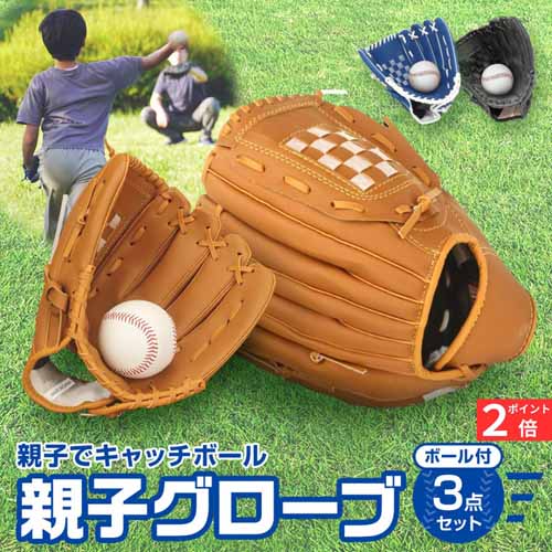 大人用・子ども用グローブとボールの3点セット。柔らか加工済みなので、届いたその日からすぐに使えることも便利です。衝撃吸収性に優れたフェイクレザー素材で、手の甲に当たる部分はボア素材を使用しているため、子どもでも快適に使えます。