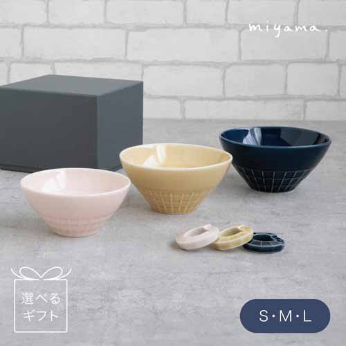 美濃焼の上品な佇まいと、ころんとしたフォルムが魅力。大人用と子ども用でサイズ違いのS・M・Lセットになっていて、箸置きも付属されます。色の組み合わせをそれぞれ自由に選ぶことができ、専用箱付きでプレゼント映えします。