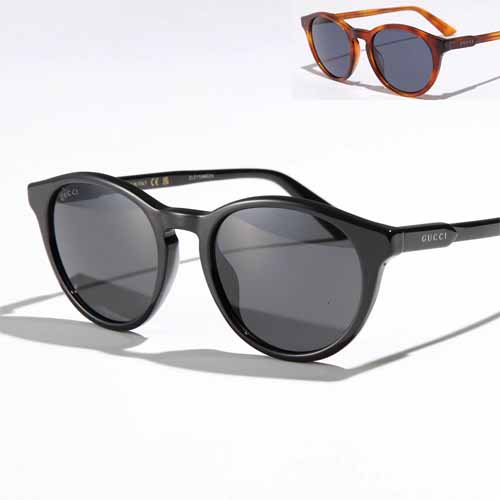 シンプルながらも透明感のあるボストン型サングラス。サイドに施されたGUCCIのロゴがアクセントになり、スタイリッシュな印象を与えてくれます。日本人の顔立ちにも親和性が高いアジアンフィットデザインで、UVカットレンズが付いています。