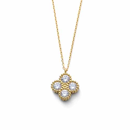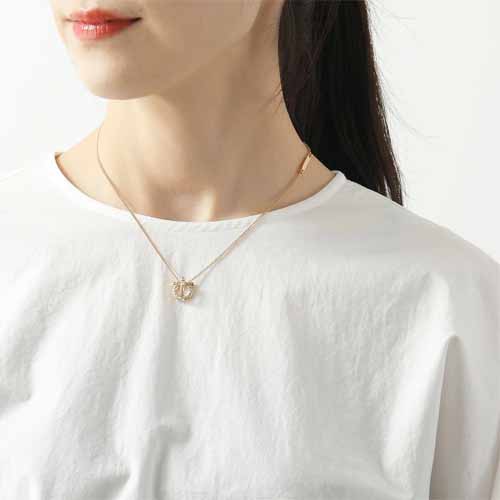 立体感のあるガンチーニペンダントがほどよい存在感を放ち、ゴールドカラーのチェーンが顔まわりを明るく見せてくれます。専用BOXと保存袋付きで、開けた瞬間の特別感までしっかり演出できます。