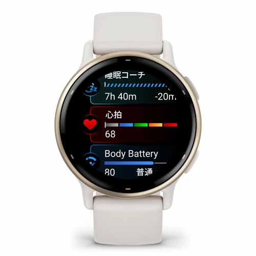 アクティビティ記録や睡眠、ストレス管理など、毎日のコンディションを可視化しやすい機能が充実しています。軽やかな着け心地で普段使いしやすく、ワークアウト時だけでなく日常でも活躍します。