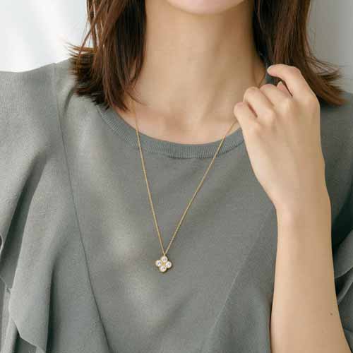 トップのクローバーデザインがおしゃれ&キュート。磁石カプセルがチェーンのアクセントモチーフとなって、ジュエリー感覚で身につけられます。