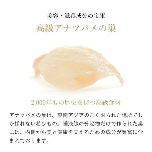 世界三大美女・楊貴妃も好んで食べたという、美容と健康に重要な成分「糖鎖」が豊富なツバメの巣。大容量で贅沢なルーティンをプレゼントできます。