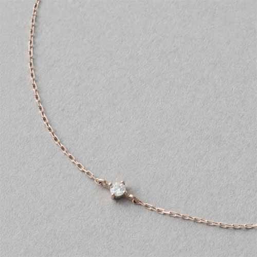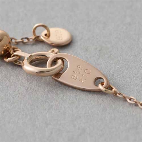 ete独自の“K10ミストピンクゴールド”が、フェミニンでいて落ち着いた雰囲気を演出。1粒ダイヤモンドのジュエリーは、コーディネートに合わせやすくて◎。