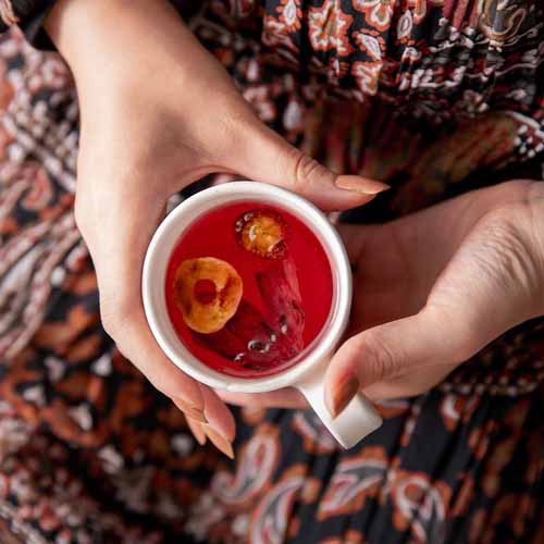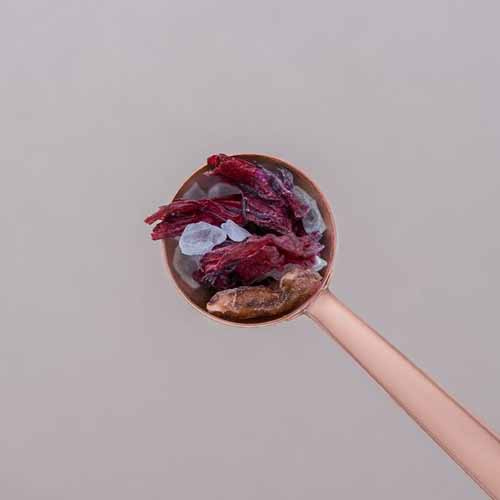 洛神花・山査子・氷砂糖をブレンドした、飲んで食べて楽しめるお茶。漢方薬剤師監修で、巡りと潤いを意識した設計です。約30杯分とたっぷり使え、日々のルーティンにも取り入れやすい仕様。優しい甘酸っぱさで、ほっと心がほどけます。