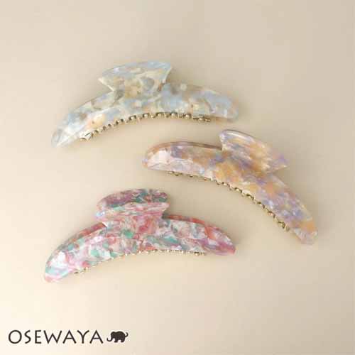 しっかり髪をまとめられる特大サイズで、毛量が多い方でも安心。温かみのあるマーブルカラーが上品で、カジュアルにもきれいめにも合わせやすいデザインです。軽い使い心地で着脱もしやすく、忙しい朝やリラックスタイムにも活躍します。