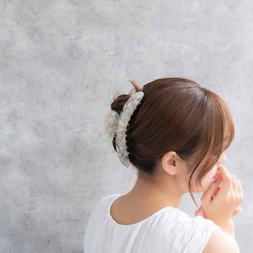 ミディアム〜ロングヘアの彼女にとって、ヘアクリップはいくつあっても困らない実用アイテム。外出時はもちろん、おうちでくつろぐ時間にも使えるので、日常に自然となじみます。マーブル柄の大人っぽさがあり、可愛さと落ち着きの両方を大切にする彼女に贈りやすい一点です。