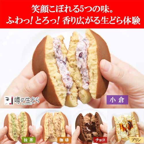 ふわふわのどら皮に、なめらかな生クリームと小倉や抹茶など5種の味わいを合わせたセット。楽天ランキング1位を獲得したことのある実力派で、緑茶にもコーヒーにも相性抜群。冷凍で約90日保存可能です。