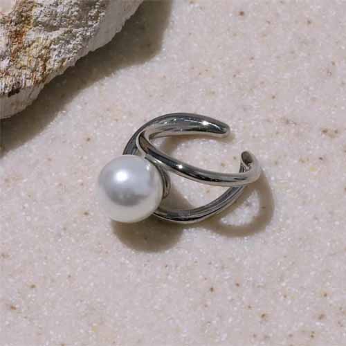 サージカルステンレス製で金属アレルギーが起こりにくく、水や汗にも強い素材。滑らかな曲線にパールをあしらい、耳元に程よい存在感を与えます。シンプルなデザインで他のアクセサリーとも合わせやすく、長く愛用できる仕様です。