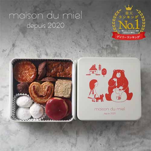 「なんでもない日」に贈るなら、見た目にも心が和むクッキー缶が最適。メゾン・デュ・ミエルは、可愛らしいイラストと7種の焼き菓子で特別感がありつつ、気負わず渡せます。少しずつ大切に食べられるので、忙しい彼女への労いにも◎。