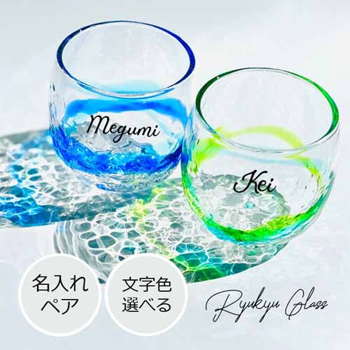 職人の手作業で作られた琉球グラス。沖縄の海からインスピレーションを得た、爽やかな色合いです。多彩なデザインや名入れを活用すれば唯一無二のグラスギフトが出来上がり、夫婦やカップルへのお祝いにぴったりの一品です。