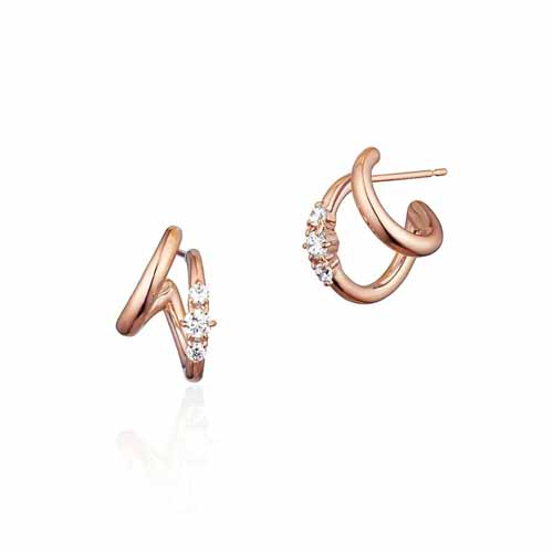 2本のラインがひとつになったフープに、キュービックジルコニアがセットされたピアス。軽やかなつけ心地で耳元をさりげなく華やかに彩ります。見る角度によって表情が変わるデザインは、やわらかさとしなやかさを表しています。