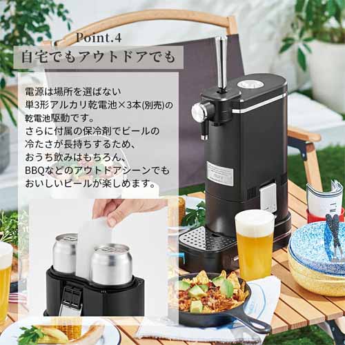 リッチなカラーでコンパクトなデザイン性。ひとりでも大勢でも、宅飲みが盛り上がるだけでなく、乾電池駆動なのでアウトドアなど屋外にも持ち出せます。