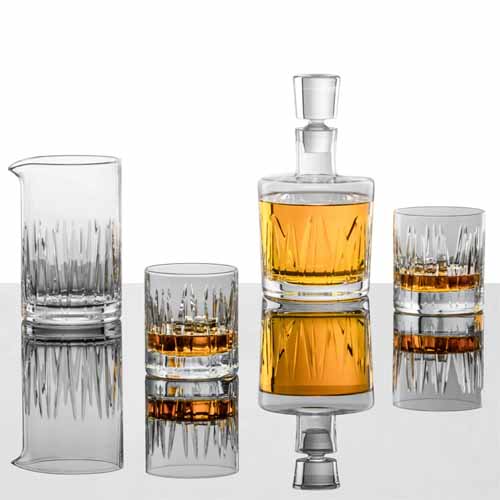 高品質トリタンクリスタルを採用し、割れにくく扱いやすいのが特徴。デザイン性もバツグンで、静かな森の木立を思わせるカットが、静寂とゆったりとした時間を演出してくれます。
