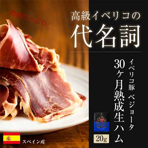 豚の品種や熟成度合いの違いを楽しめる生ハムセット。6種に含まれるレアル・ベジョータは、イベリコ豚全体の2%しか居ない貴重な豚で、スペイン王室にも献上されている高級生ハムです。しっとりと肉の旨味が凝縮されていながら脂っぽくなく、1パック20gでおつまみにぴったりです。