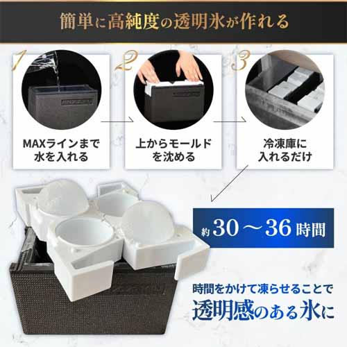 高純度ならではのクリスタルクリアな氷に魅せられるアイテム。通常の丸氷タイプとサッカーボールタイプの2種類から選べます。