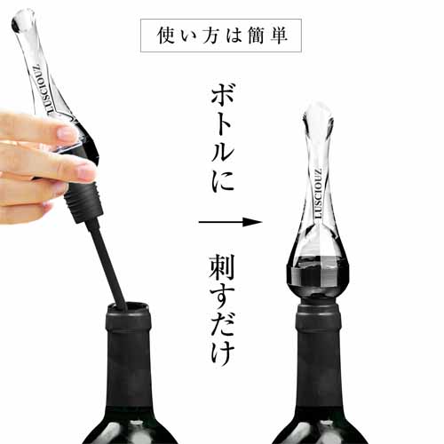 シリコンゴムでしっかり密閉し、液だれ防止構造でテーブルやワインボトルが汚れる心配もありません。酸化を促進して風味を最大限に引き出し、赤ワインはまろやかに、白ワインはよりフルーティに変化。手軽で高コスパなワインギフトです。