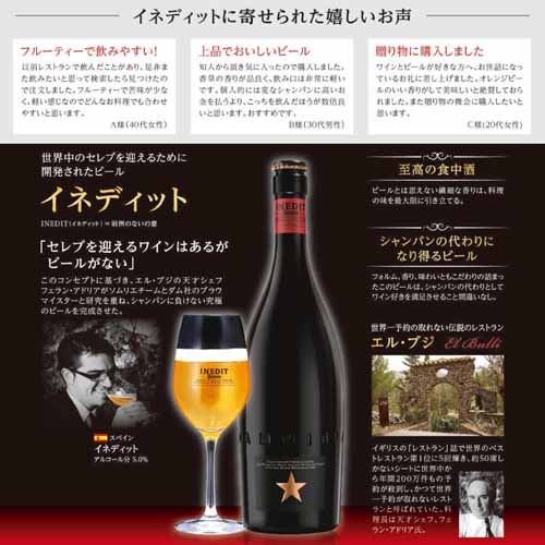ビール党に贈るなら、“いつもの一杯”を特別にするプレミアムビールがおすすめ。スペイン発「INEDIT」は、シャンパーニュのような香りと繊細な泡立ちで、世界のトップシェフが監修した逸品です。いつもの晩酌をレストラン気分にしてくれます。