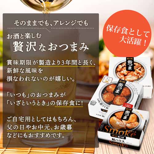 手軽なのに本格派。K&Kの「缶つま」は、酒飲みの定番おつまみとして不動の人気を誇ります。開けた瞬間に広がる香りと味の完成度は、缶詰とは思えないクオリティ。災害時の非常食にもなるユーティリティープレイヤーです。