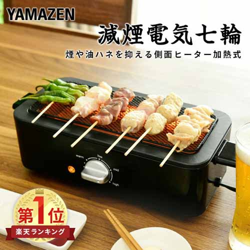 YAMAZENの「減煙電気七輪」は、赤外線ヒーターと独自構造で煙を大幅カット。小型サイズで脂ハネも軽減されるので卓上でも使いやすく、ダイヤル式で焼き加減の調整もラクラク。スライド式のトレイでお手入れも簡単です。