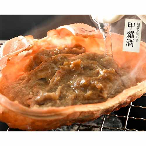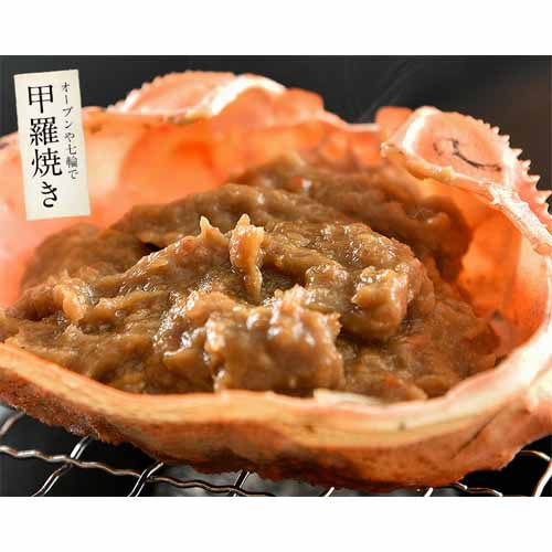 紅ズワイガニの濃厚なカニ味噌にほぐし身を加えて炊き込み、甲羅ごと詰め込んだ一品。甲羅を器にして盛り付けてあるので、自然解凍するだけで手を汚すことなく極上の酒肴を楽しめます。