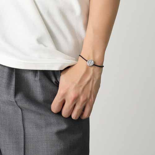 ブラックのラムスキンコードメタルコインが印象的なブレスレットです。シルバー×ブラックのカラーリングが上品かつ男らしい印象を演出。クラスプにもCDチャーム付いていて、主張しすぎずも随所におしゃれ感が散りばめられています。