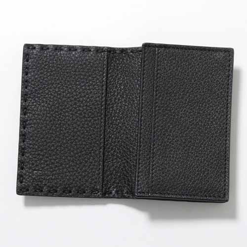 シボ加工を施した上質なレザーと、ハンドステッチで仕上げた縁が特徴的なカードケース。コンパクトながら収納力があり、カードや名刺をスマートに整理できます。派手なロゴ主張が少なく、大人の品格を演出できるのもポイント。