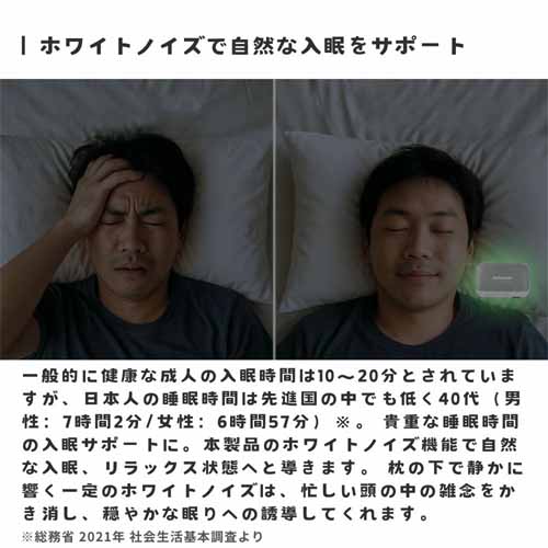 「Dreamegg D3pro」は、睡眠時に使いやすい音環境づくりをサポートするアイテム。コンパクトでベッドサイドにも置きやすく、継続して使いやすいのが特長です。音に敏感な人への快眠グッズとして有力です。
