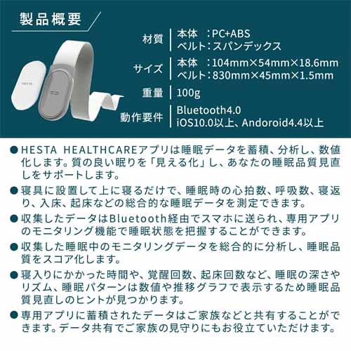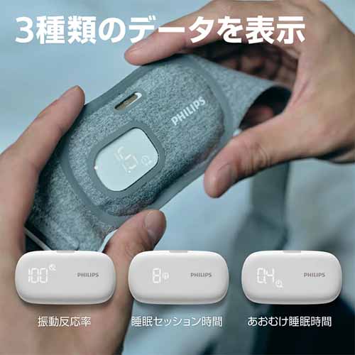 睡眠データを測定したり、あおむけで寝ているときに寝返りを促す振動をかけたりしてくれる優れもの。29gと軽いので就寝時の装着感も気になりにくいです。