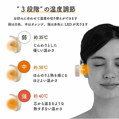 USB充電式で繰り返し使えるため、コスパの面でも優秀。高温・低温モードを選べ、耳まですっぽり包み込むので、自分だけのリラックス空間をつくりだせます。