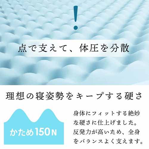 点で支えて体圧を分散。理想的な寝姿勢をキープする硬さでしっかりとカラダにフィットし、心地よい睡眠をサポートしてくれます。