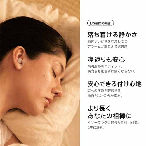 「Loop Dream」は、睡眠時の使用を意識したイヤープラグで、快適さと静けさのバランスを重視した設計が魅力。繰り返し使いやすく、見た目もスタイリッシュ。眠る前の音ストレスを減らしたい人に向いています。