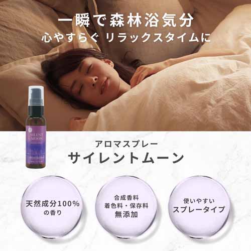 「サイレントムーン」は、眠る前の空間に取り入れやすい香り設計が魅力のアロマスプレー。寝具や空間にシュッと使いやすく、手軽にリラックス環境を整えられます。プレゼントでも気軽に贈りやすい実用的な一本です。