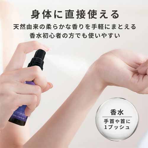 ヒノキとラベンダーの香りが心地よいリラックスアイテム。天然由来成分でカラダにも直接使え、外出先や旅行先への持ち運びもしやすいサイズ感です。